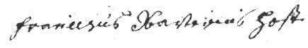 François Xavier Host est né en 1815 et décédé en 1883. Ses enfants sont nés entre 1843 et 1863. De ce fait, peu d’actes le concernant sont rédigés en kurrentschrift: